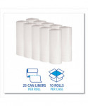 Low-Density Waste Can Liners, 10 gal, 0.4 mil, 24" x 23", White, Perforated Roll, 25 Bags/Roll, 20 Rolls/Carton