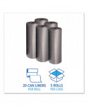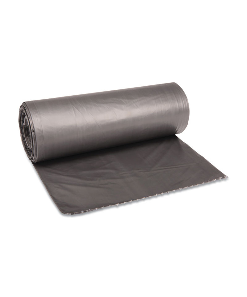 Low-Density Waste Can Liners, 60 gal, 1.1 mil, 38" x 58", Gray, Perforated Roll, 20 Bags/Roll, 5 Rolls/Carton