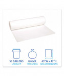 Low-Density Waste Can Liners, 56 gal, 0.6 mil, 43" x 47", White, Perforated Roll, 25 Bags/Roll, 4 Rolls/Carton