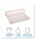 Recycled Low-Density Polyethylene Can Liners, 33 gal, 1.1 mil, 33" x 39", Clear, Perforated, 10 Bags/Roll, 10 Rolls/Carton