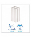 Can liner with equivalent strength of 2 mil liner. Perforated roll for easy dispensing. Coreless rolls save space and material.