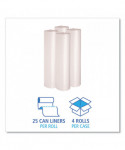 Can liner with equivalent strength of 2 mil liner. Perforated roll for easy dispensing. Coreless rolls save space and material.