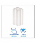 Upgrade your waste management with these performance can liners. These can liners have a star-sealed bottom design that evenly distributes weight and provides reliable load support. Coreless, perforated rolls provide seamless dispensing, storage efficiency, and make them easy to use and handle. Suited for most standard sized bins. Ideal for commercial settings seeking dependable trash containment.