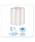 Upgrade your waste management with these performance can liners. These can liners have a star-sealed bottom design that evenly distributes weight and provides reliable load support. Coreless, perforated rolls provide seamless dispensing, storage efficiency, and make them easy to use and handle. Suited for most standard sized bins. Ideal for commercial settings seeking dependable trash containment.