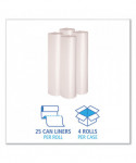 Can liner with equivalent strength of 2 mil liner. Perforated roll for easy dispensing. Coreless rolls save space and material.
