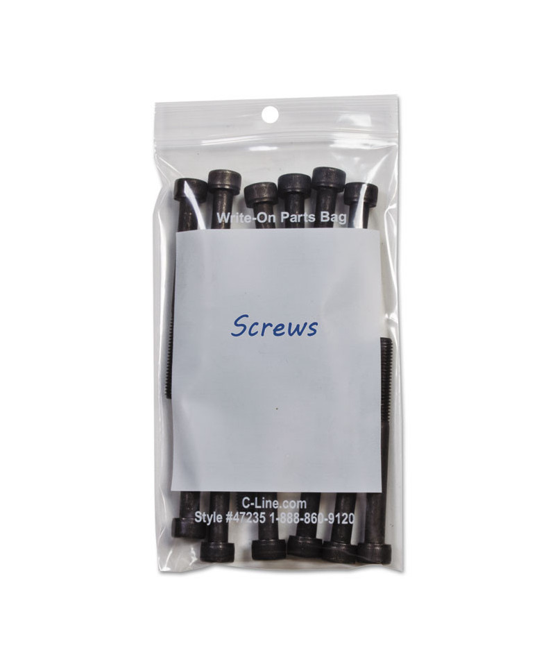 Perfect for storing items, such as rubber bands, screws or push pins. Make identification of the contents easier by labeling the bags. The write-on panel, located on one side of the bag, works with both pen and marker. Clear, poly bags have a zip-close seal that makes them waterproof, airtight and reusable. This product will be cheerfully replaced with one of equal value if defective in materials, manufacturing or packaging at the time of purchase. Except for such replacement, this product is sold without warranty or liability even though defect, damage or loss is caused by negligence or other fault.