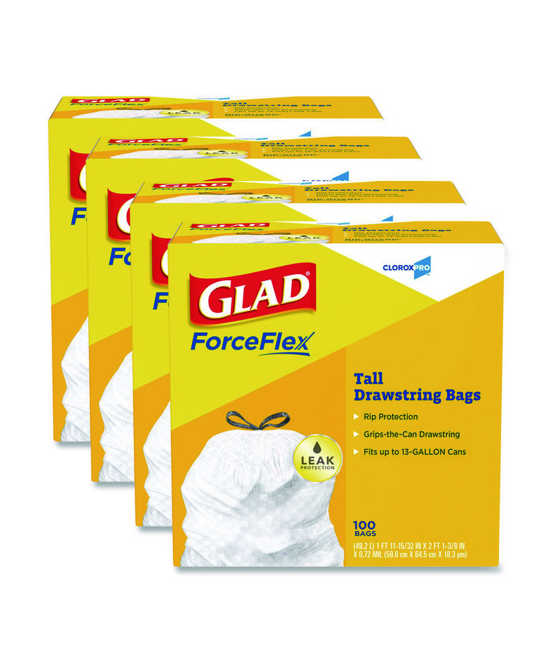 Prevent the spread of odor-causing bacteria with Glad®. These OdorShield® bags provide lasting freshness as it continuously neutralizes nasty kitchen odors. The ForceFlex™ technology delivers extra toughness as it flexes and expands around sharp edges and heavy loads without ripping. Featuring RipGuard and LeakGuard technology, these trash bags guard against punctures and tears, and traps liquids in the bag so you can put your most demanding trash up for the challenge. Let the stretchable strength of Glad handle all the messes our busy daily life can throw at it and then some. The Grips-The-Can Drawstring ensures that the bag stays in place, until you are ready to take it out. The 13 gallon size is perfect for the kitchen or throughout the office and is great for your seasonal cleaning needs like Spring Cleaning and Back to School. Packaging may vary.