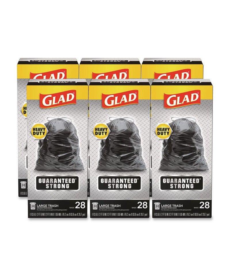 Trust Glad® extra strong trash bags for all your toughest jobs, indoors or outdoors. These heavy-duty trash bags are guaranteed strong to handle your biggest projects inside and outside the home. Prevent rips and tears with Glad's unique design, allowing the bag to stretch at top while reinforced bands through middle contain bulky trash. The strong 3-ply drawstring grips the can so the bag stays in place and allows you to easily close the fullest bag when you're ready to take it out. You can count on these bags to contain your messiest trash. Glad® garbage bags work as hard as you do to maintain a clean and active home, designed to handle your kitchen trash and tackle indoor and outdoor activities. Take on the trash and all your tough jobs with the confidence of Glad®.