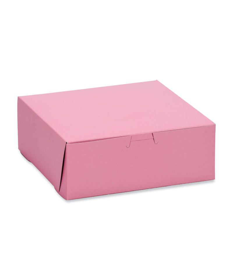 Pink One-Piece Non-Window Bakery Box, 8 x 8 x 3, Pink, Paper, 250/Carton