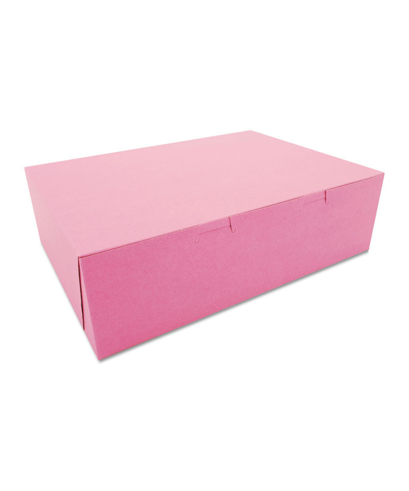 Pink One-Piece Non-Window Bakery Box, 14 x 10 x 4, Pink, Paper, 100/Carton