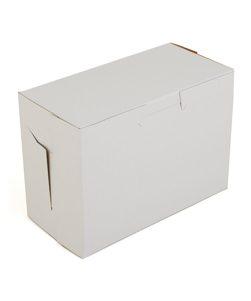 The bakery box is made from high quality paperboard that is white on the outside and Kraft on the inside. Perfect for cakes, pastries, pies and cupcakes. The white, clay-coated exterior accepts a printed logo or business name. Each one-piece box ships flat for transport and storage, but assembles easily into a folded carton with lock-corner closures and a tuck top to secure contents.