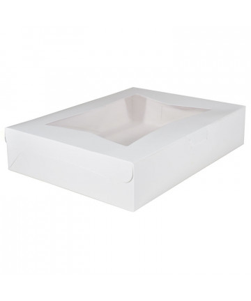 The bakery box is made from high quality paperboard that is white on the outside and Kraft on the inside. Perfect for cakes, pastries, pies and cupcakes. The white, clay-coated exterior accepts a printed logo or business name. Each one-piece box ships flat for transport and storage, but assembles easily into a folded carton with lock-corner closures and a tuck top to secure contents.