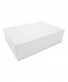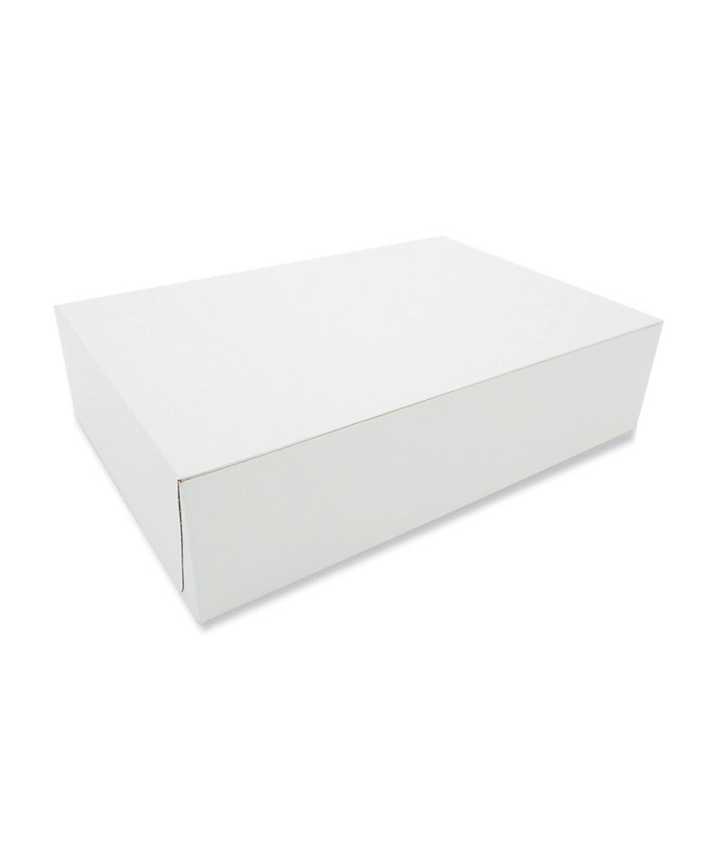 The bakery box is made from high quality paperboard that is white on the outside and Kraft on the inside. Perfect for cakes, pastries, pies and cupcakes. The white, clay-coated exterior accepts a printed logo or business name. Each one-piece box ships flat for transport and storage, but assembles easily into a folded carton with lock-corner closures and a tuck top to secure contents.