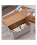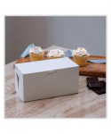 The bakery box is made from high quality paperboard that is white on the outside and Kraft on the inside. Perfect for cakes, pastries, pies and cupcakes. The white, clay-coated exterior accepts a printed logo or business name. Each one-piece box ships flat for transport and storage, but assembles easily into a folded carton with lock-corner closures and a tuck top to secure contents.