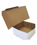 The bakery box is made from high quality paperboard that is white on the outside and Kraft on the inside. Perfect for cakes, pastries, pies and cupcakes. The white, clay-coated exterior accepts a printed logo or business name. Each one-piece box ships flat for transport and storage, but assembles easily into a folded carton with lock-corner closures and a tuck top to secure contents.