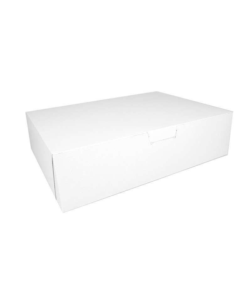 The bakery box is made from high quality paperboard that is white on the outside and Kraft on the inside. Perfect for cakes, pastries, pies and cupcakes. The white, clay-coated exterior accepts a printed logo or business name. Each one-piece box ships flat for transport and storage, but assembles easily into a folded carton with lock-corner closures and a tuck top to secure contents.