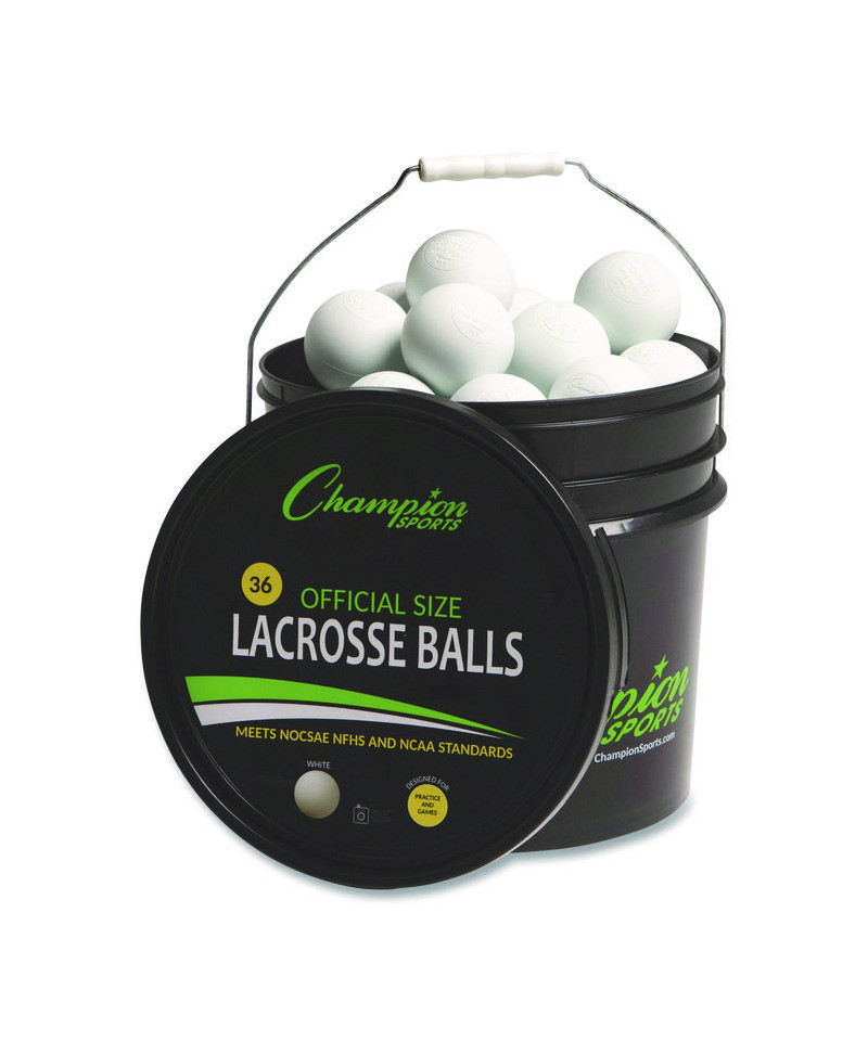 Stock up with a bucket full of regulation size, regulation weight lacrosse balls from Champion Sports. Approved by the NFHS and NCAA for official gameplay at the high school and collegiate levels, these precision molded rubber balls are designed to provide a professional feel and a proper flight profile to help ensure shooting and passing accuracy on the field. Rugged storage bucket with metal wire handle, molded plastic handgrip and lift-off lid keeps the balls neat and tidy until it's time to play. Whether you're trying out for your junior varsity team or a seasoned pro, Champion Sports Lacrosse Balls are an essential. SEI certified balls also conform to all NOCSAE® standards.