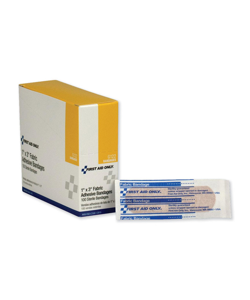 Add to cart First Aid Fabric Bandages, 1" x 3", 50/Box $6.88 Assortment of bandages for cuts and abrasions in the workplace or home.
