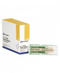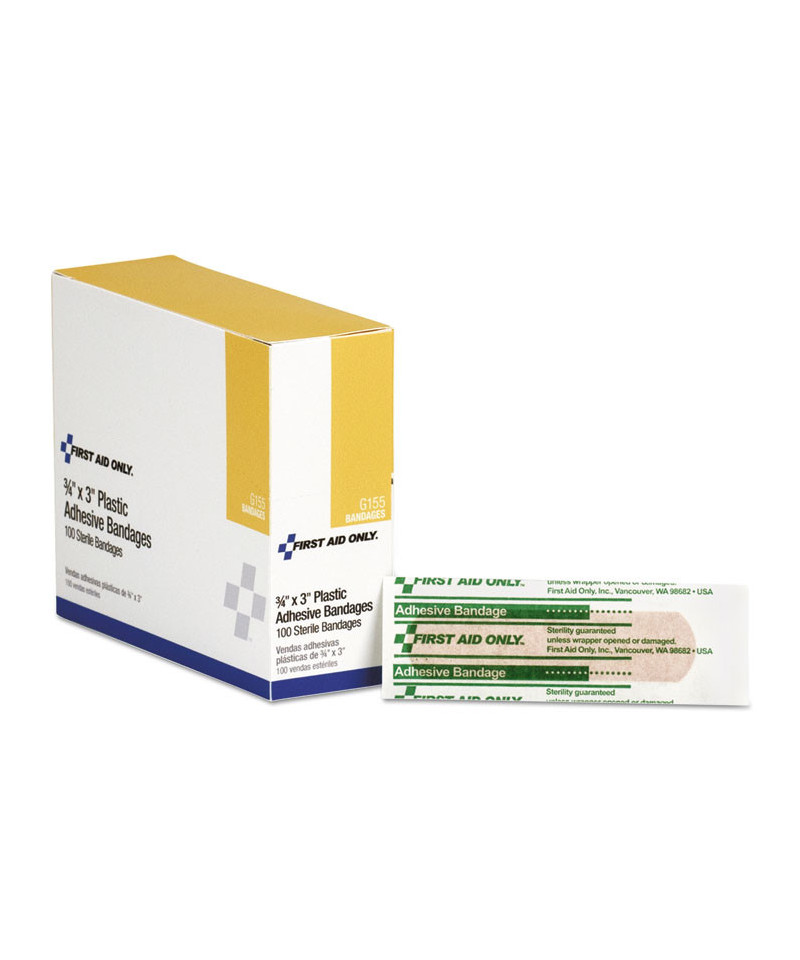 Wound dressing adhesive plastic bandages. Pliable vinyl is ventilated to aid healing. Stand alone packaging for larger size first aid kits and cabinets.