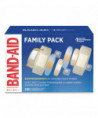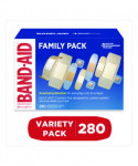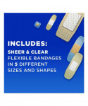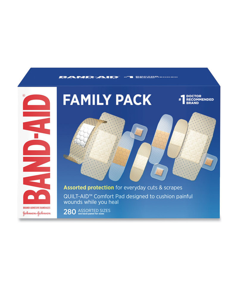 Covered wounds heal faster than if left uncovered. Try Band-Aid Brand Sterile Adhesive bandages from the #1 doctor recommended bandage brand. The Adhesive Bandage Family Variety Pack contains assorted sizes of sheer and clear adhesive bandages for any minor cut, scrape, or burn. These sterile bandages feature a Quilt-Aid Comfort Pad designed to cushion painful wounds while you heal and Tri-Ply backing with unique adhesive staying power. The backing of the flexible bandages is designed with Microvent Technology for superior breathability. The Hurt-Free Pad won't stick to the wound, allowing for gentle removal. Available in five different shapes and sizes, this package contains: Sheer Strips bandages measuring 1.75 x 4 inches; Sheer Strips bandages measuring 1 x 3 inches; Clear Strips bandages measuring 0.75 x 3 inches; Sheer Strips bandages measuring 0.63 x 2.25 inches; and Clear Spots bandages measuring 0.88 x 0.88 inches. Variety packages of bandages make for great first aid kit supplies.