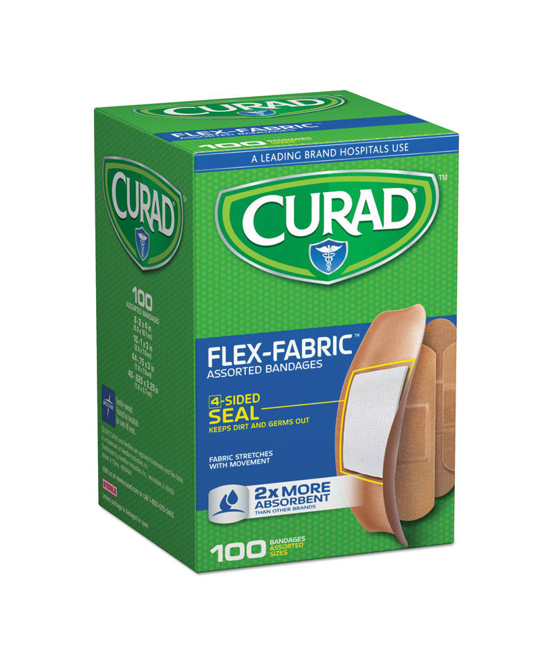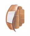 Made of woven fabric designed to stretch, bend, breathe and stay on comfortably, even when wet. The water-repellent coating keeps the bandages dry and secure. The ouchless island pad comfortably protects the wound from germs and dirt with a four-sided seal.