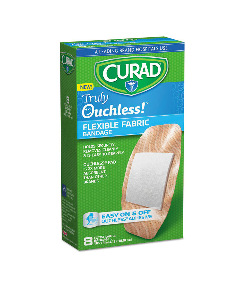 Truly Ouchless!™ technology achieves exceptional bandage protection without the hurtful removal. Advanced adhesive is completely repositionable, making checking wounds much easier. Highly absorbent pad seals on all four sides. Bandages hold securely, yet remove cleanly and are easy to re-apply.