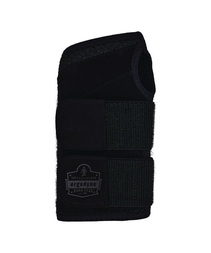 Open center stay insert provides stable support to relieve wrist pain on and off the worksite. The semi-rigid plastic insert is positioned on the palm of users' hands, alleviating pressure on wrist nerves and enabling increased freedom of movement. Dual tightening straps with hook-and-loop closures increase levels of compression in key areas and allow the brace to stay in place. Crafted with a contoured woven nylon-polyester-spandex material, this wrist wrap is designed for long-lasting, comfortable wear. An open design on the top allows fingers and thumb to have full range of motion when in use. This wrist wrap support is crafted to provide gentle stability for individuals, including workers, athletes or anyone experiencing minor sprains, strains or discomfort from repetitive motions, es