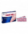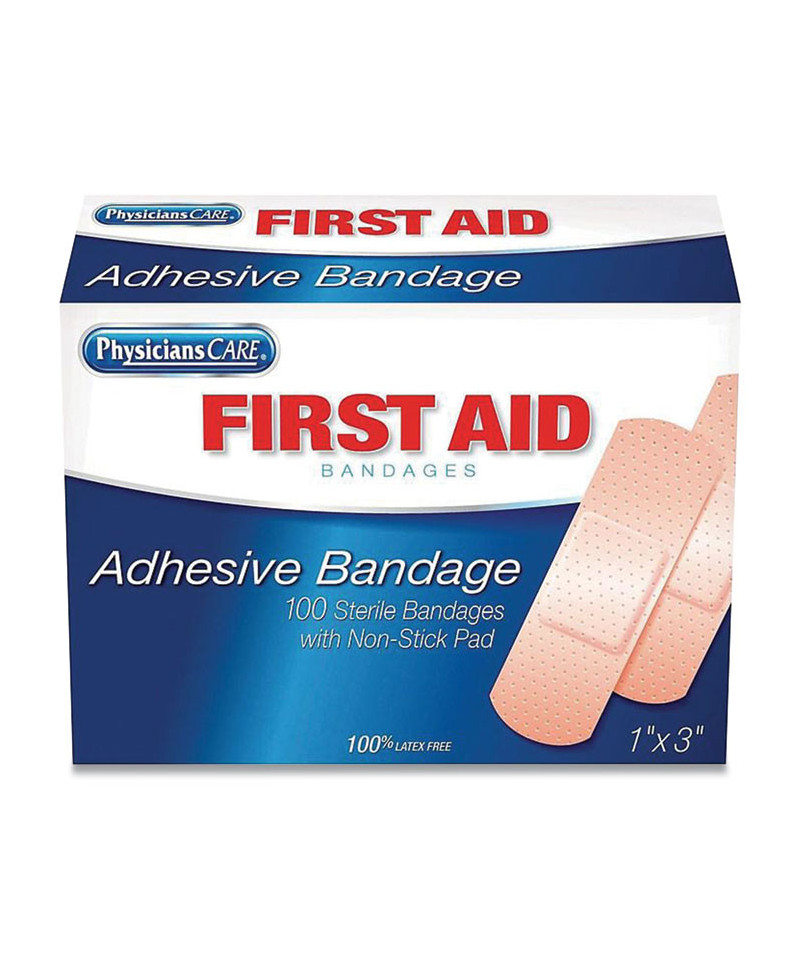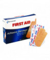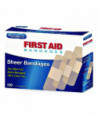 Wound dressing adhesive plastic bandages. Pliable vinyl is ventilated to aid healing. Stand alone packaging for larger size first aid kits and cabinets.