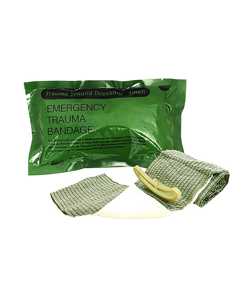 The Israeli bandage is a specially designed, first-aid device that is used to stop bleeding from hemorrhagic wounds caused by traumatic injuries in pre-hospital emergency situations. Made from a sturdy but stretchable 4" wide fabric wrap, a sterile non-adherent pad and a built-in pressure applicator that allows the user to leverage the strap against the wound to keep maximum pressure for constricting the blood-flow. The Israeli Bandage is designed for quick and easy application by professional and non-professional caregivers. The product is so easy to use that even an injured person can apply the bandage to themselves with one hand.