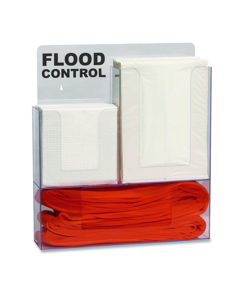 Protect your hospital, educational facility or property against leaks and spills with Quick Dam Wall Rack indoor flood control. Mount to any wall and mitigate slips and falls by soaking up any nuisance water issue. Clearly marked with flood control, easy to deploy solutions will keep your facility prepared for any water issue. Refillable.