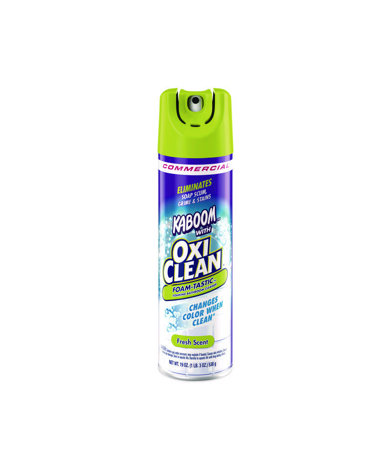 Takes the guesswork out of cleaning. Spray on the penetrating blue foam and OxiClean Stain Fighters go to work on contact, breaking up soap scum and hard water stains. When the foam turns white, just wipe and rinse to reveal a brilliant shine. Cleans with a fresh scent and no obnoxious fumes. Also removes dirt, calcium, lime, grease and grime. Great for use on tubs, glazed ceramic tile, fiberglass, shower doors, vinyl curtains, sinks, countertops and chrome fixtures.