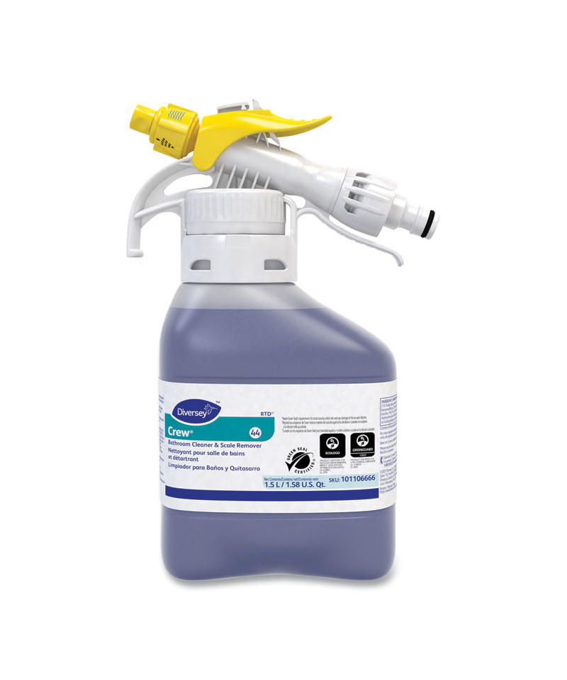 Mildly acidic cleaner is powerful and efficient in removing soap scum and hard water stains. The non-corrosive formula is safe to use on nearly all washable restroom surfaces. Quick, streak-free drying will not leave residue on mirrors. Regular use prevents build-up of bathroom soils.
