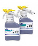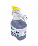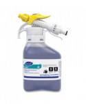 Mildly acidic cleaner is powerful and efficient in removing soap scum and hard water stains. The non-corrosive formula is safe to use on nearly all washable restroom surfaces. Quick, streak-free drying will not leave residue on mirrors.