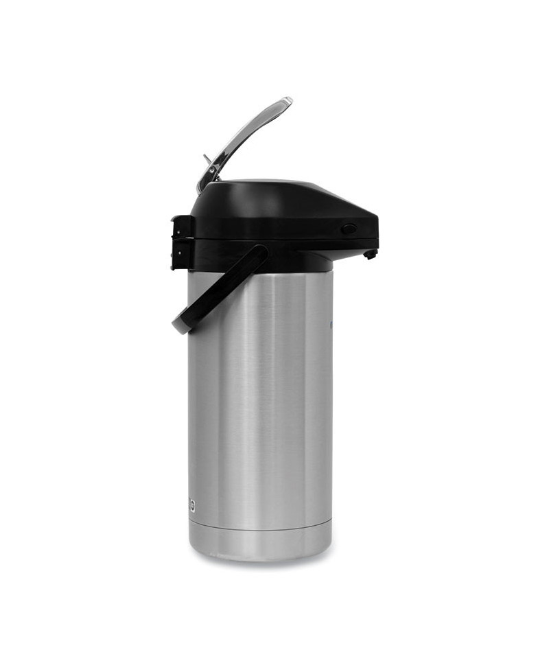 Conveniently brew directly from brewer. Beverage dispenser features an all-stainless steel construction and lever style pump for easy serving. Seamless stainless steel vacuum liner is durable and ensures beverages remain cold or hot for hours.