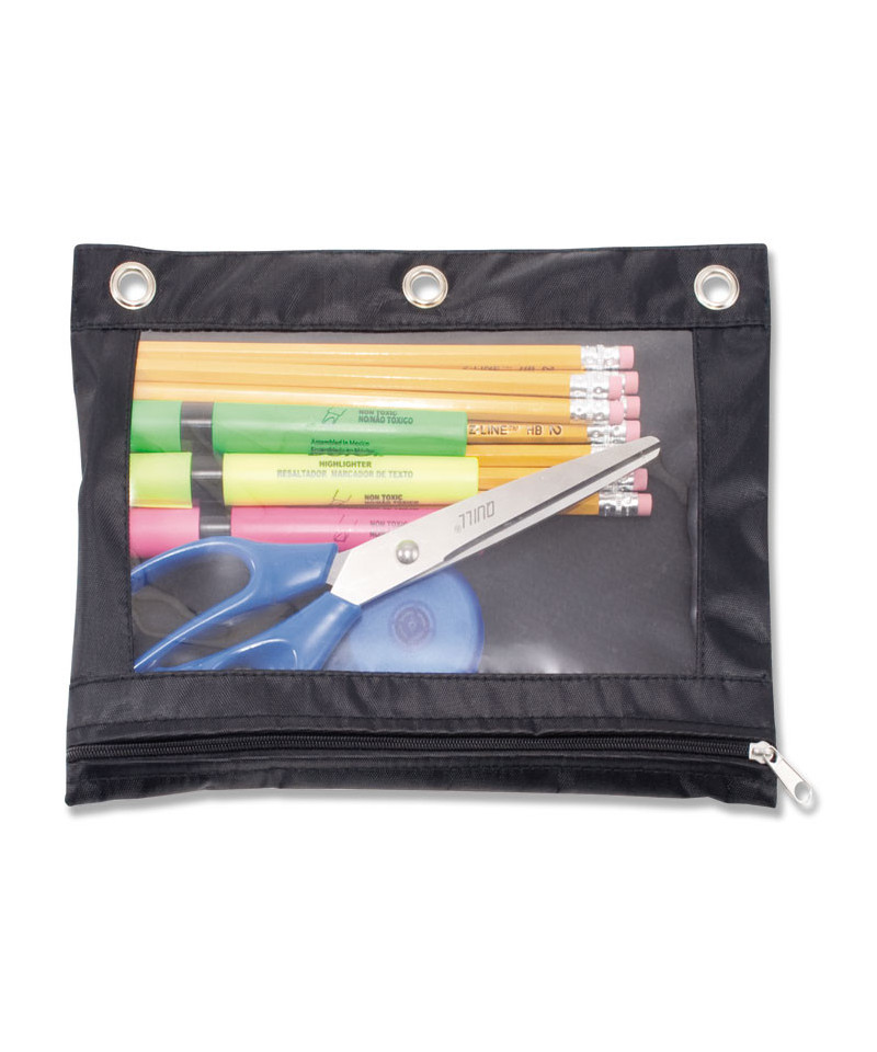 The Advantus Binder Pouch is a classic companion for keeping pens, pencils, erasers, post-its, highlighters, or any other small materials organized and within reach inside of any standard-size 3-ring binder. Easily see through the clear plastic window on the front of the pouch to see what is inside and find the contents quickly. This pouch is enforced with metal rivets for extra strength and durability. Zipper closure keeps contents secure.