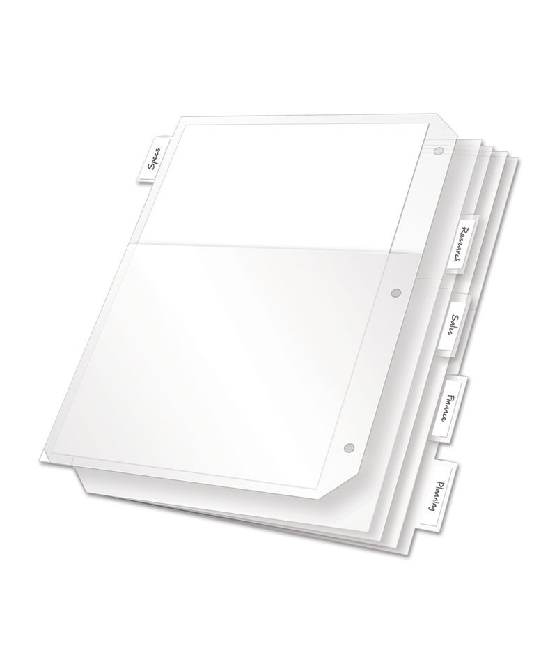 Cardinal® Double-Pocket Poly Dividers are made tough to outperform paper index dividers. These durable dividers let you flip through sections without ripping at the rings. Archival-safe, non-stick poly won't damage photos or transfer ink from pages. Tabs leave ample room for writing. Paper inserts included. Dividers are 3-hole punched to fit 3-ring binders. Holds 25 sheets per pocket. Letter size. Five divider set.