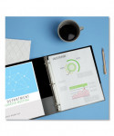 Light use binder for easy projects. Two interior pockets can be used to store handouts as well as loose or unpunched pages. Rings are mounted on back cover for a clean spine and pages lie flat.