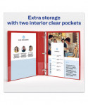 Light use binder for easy projects. Two interior pockets can be used to store handouts as well as loose or unpunched pages. Rings are mounted on back cover for a clean spine and pages lie flat.