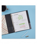 Light use binder for easy projects. Two interior pockets can be used to store handouts as well as loose or unpunched pages. Rings are mounted on back cover for a clean spine and pages lie flat.