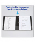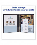 Light use binder for easy projects. Two interior pockets can be used to store handouts as well as loose or unpunched pages. Rings are mounted on back cover for a clean spine and pages lie flat.