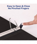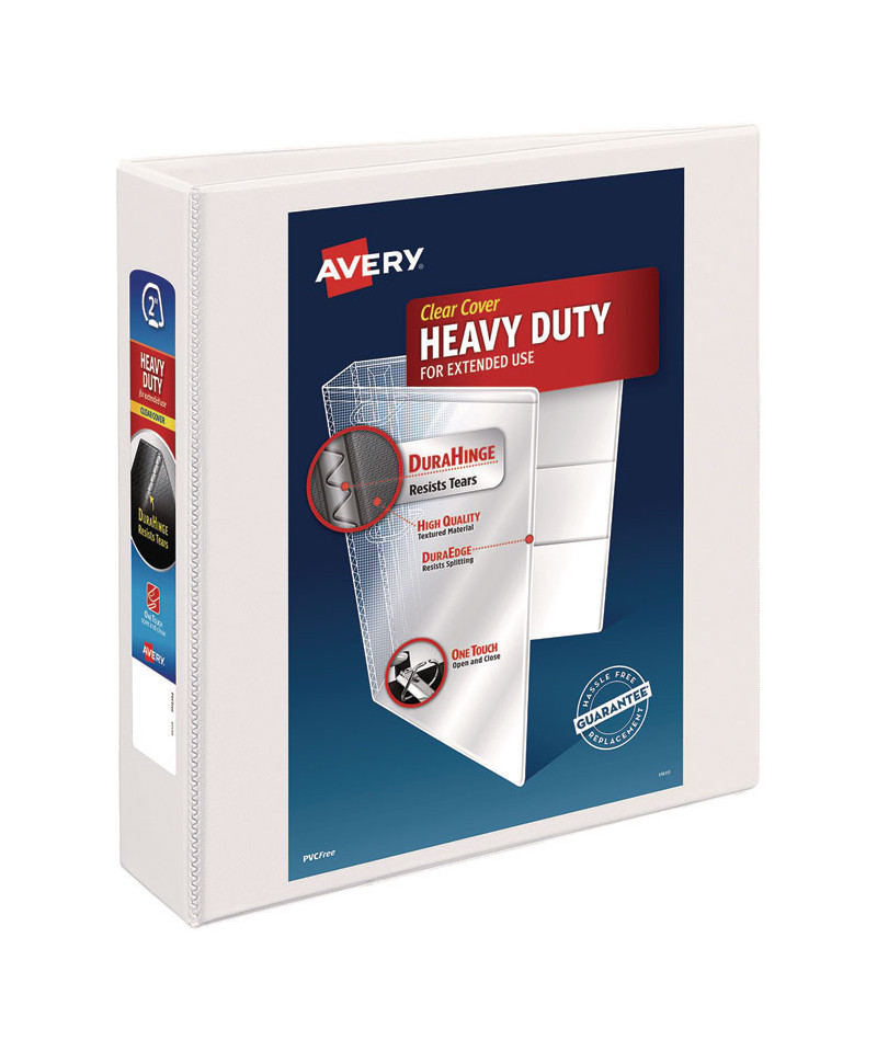 With this Heavy-Duty Nonstick View Binder you get one-touch operation and the durability required for everyday use. Nonstick material won't lift ink or toner off printed pages. Tear-resistant DuraHinge® design is stronger and lasts longer. DuraEdge® feature makes the sides and top more pliable, providing greater split resistance. Deeply textured film offers a smoother finish and features a linen pattern for a high-quality look and feel. Four clear, interior pockets provide extra storage space. Wider front and back panels fully cover standard dividers and sheet protectors. Slant rings have a higher page capacity when compared to the same size round rings. Pages lie flat with back-mounted rings (exposed rivets on back). Customize your title page using free templates and designs at Avery® Design & Print Online.