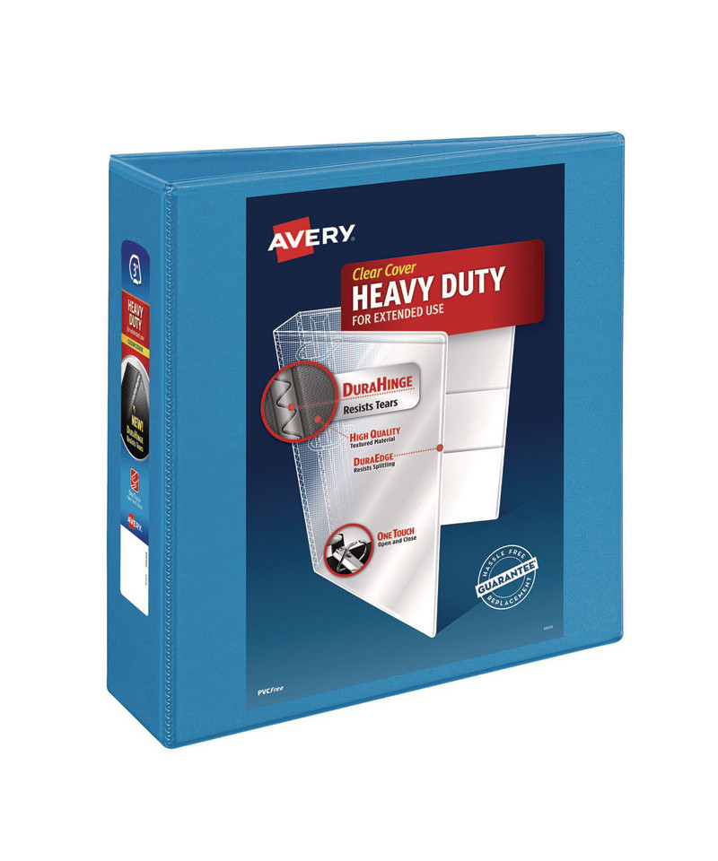 With this Heavy-Duty Nonstick View Binder you get one-touch operation and the durability required for everyday use. Nonstick material won't lift ink or toner off printed pages. Tear-resistant DuraHinge® design is stronger and lasts longer. DuraEdge® feature makes the sides and top more pliable, providing greater split resistance. Deeply textured film offers a smoother finish and features a linen pattern for a high-quality look and feel. Four clear, interior pockets provide extra storage space. Wider front and back panels fully cover standard dividers and sheet protectors. Slant rings have a higher page capacity when compared to the same size round rings. Pages lie flat with back-mounted rings (exposed rivets on back). Customize your title page using free templates and designs at Avery® Design & Print Online.