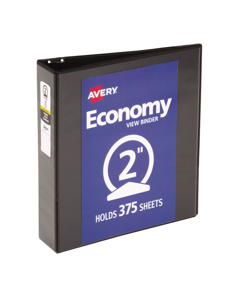 Economy View Binder with Round Rings , 3 Rings, 2" Capacity, 11 x 8.5, Black, (5730)