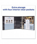 Durable construction makes it ideal for frequent reference. Tear-resistant DuraHinge® design is stronger and lasts longer. DuraEdge® feature makes the sides and top more pliable, providing greater split resistance. Deeply textured film offers a smoother finish and features a linen pattern for a high-quality look and feel. EZD® rings provide an increased capacity when compared to the same size slant or round rings. Pages lie flat with back mounted rings (exposed rivets on back). Organize and secure loose papers within four clear interior pockets.