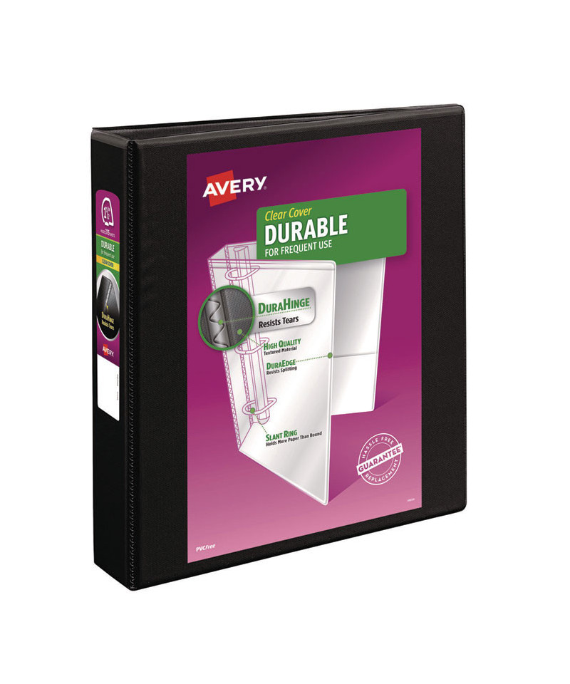 View Binder with EZD® rings was designed with a purpose—to hold more pages in less space. EZD® rings provide an increased capacity when compared to the same size slant or round rings. Tear-resistant DuraHinge® design is stronger and lasts longer. DuraEdge® feature makes the sides and top more pliable, providing greater split resistance. Deeply textured film offers a smoother finish and features a linen pattern for a high-quality look and feel. Durable construction is ideal for frequent referencing. Organize and secure papers within four interior pockets. Pages lie flat with back-mounted rings. Sturdy construction and clever design set a new standard in binder performance. Customize your binder with free templates and designs at Avery® Design & Print Online.