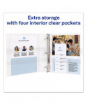 EZD® rings provide an increased capacity when compared to the same size slant or round rings. Tear-resistant DuraHinge® design is stronger and lasts longer. DuraEdge® feature makes the sides and top more pliable, providing greater split resistance. Deeply textured film offers a smoother finish and features a linen pattern for a high-quality look and feel. Durable construction is ideal for frequent referencing. Organize and secure papers within four interior pockets. Pages lie flat with back-mounted rings. Customize your binder with free templates and designs at Avery® Design & Print Online.