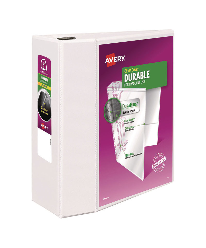 View Binder with EZD® rings was designed with a purpose—to hold more pages in less space. EZD® rings provide an increased capacity when compared to the same size slant or round rings. Tear-resistant DuraHinge® design is stronger and lasts longer. DuraEdge® feature makes the sides and top more pliable, providing greater split resistance. Deeply textured film offers a smoother finish and features a linen pattern for a high-quality look and feel. Durable construction is ideal for frequent referencing. Organize and secure papers within four interior pockets. Pages lie flat with back-mounted rings. Sturdy construction and clever design set a new standard in binder performance. Customize your binder with free templates and designs at Avery® Design & Print Online.
