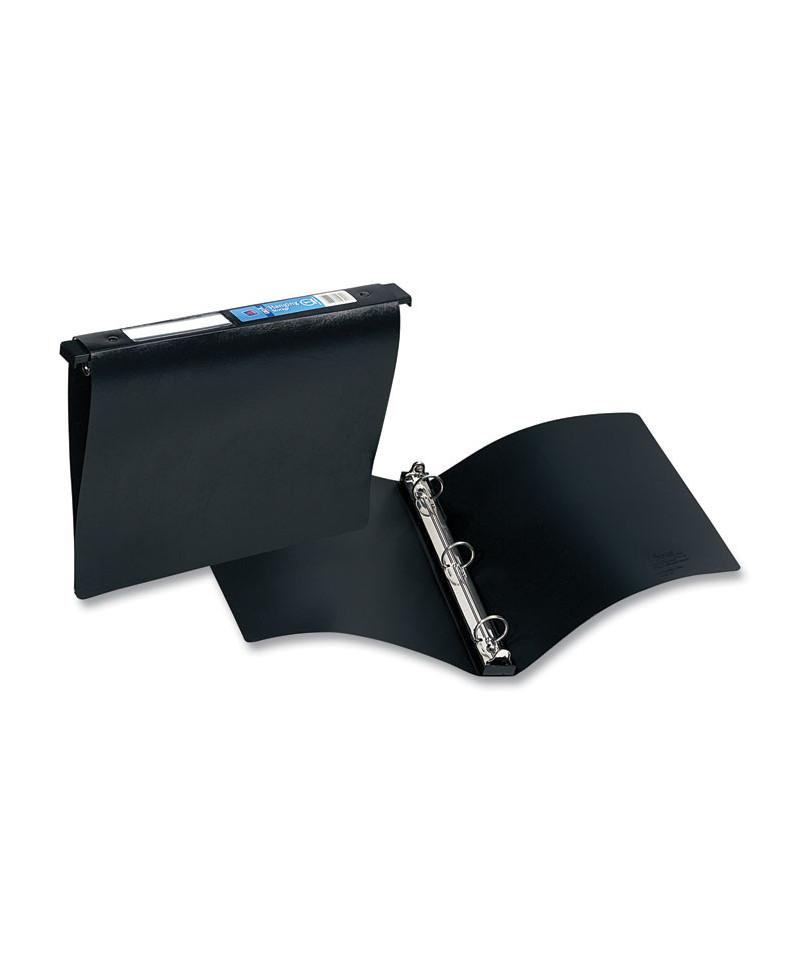 Get the hang of improved organization in no time flat. Built-in hangers make this hanging storage binder ideal for use with your standard hanging file system. The non-stick poly cover is sturdy enough to give your papers the protection they need, yet flexible enough to make storage a snap. The handy spine ID helps you find the right binder with a glance, and the rings lock to ensure that your papers stay in place. Hang strong!