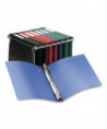 Storage binder with built-in "hangers" designed to hold the binder in standard hanging file systems. Label holder on spine helps easily identify contents. Sturdy, flexible, non-stick poly covers. Non-stick poly material prevents ink and toner transfer. Round ring. Holds 8.5" x 11" documents.