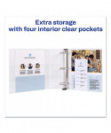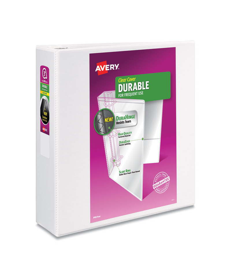 Keep lecture notes, procedures and homework assignments organized with an Avery® Durable View Binder. The durable construction is ideal for frequent referencing. The DuraHinge® design is stronger, lasts longer and resists tearing, and the DuraEdge® feature makes the sides and top more pliable, providing greater split resistance. Deeply textured film offers a smoother finish and features a linen pattern for a high-quality look and feel. Two interior pockets help you organize and secure loose papers, and the slant rings hold a higher page capacity compared to same size round rings. Use the clear overlays to label and/or decorate the covers and spine. Customize your binder more easily and more creatively with free templates and designs at Avery® Design & Print Online.
